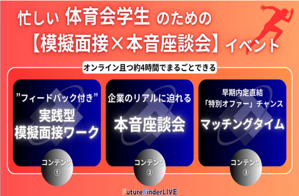 【12/1開催・早期内定直結】タイパ重視|模擬面接×座談会の超実践型プレミアム企画「Future Finder LIVE for Athlete」@オンライン